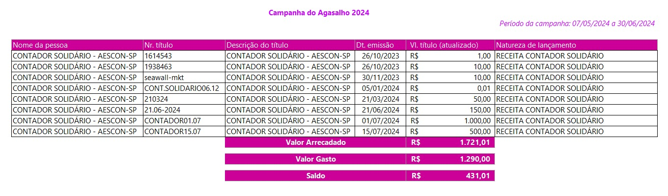 PRESTAÇÃO DE CONTAS CAMPANHA DO AGASALHO / DOAÇÕES VIA PIX