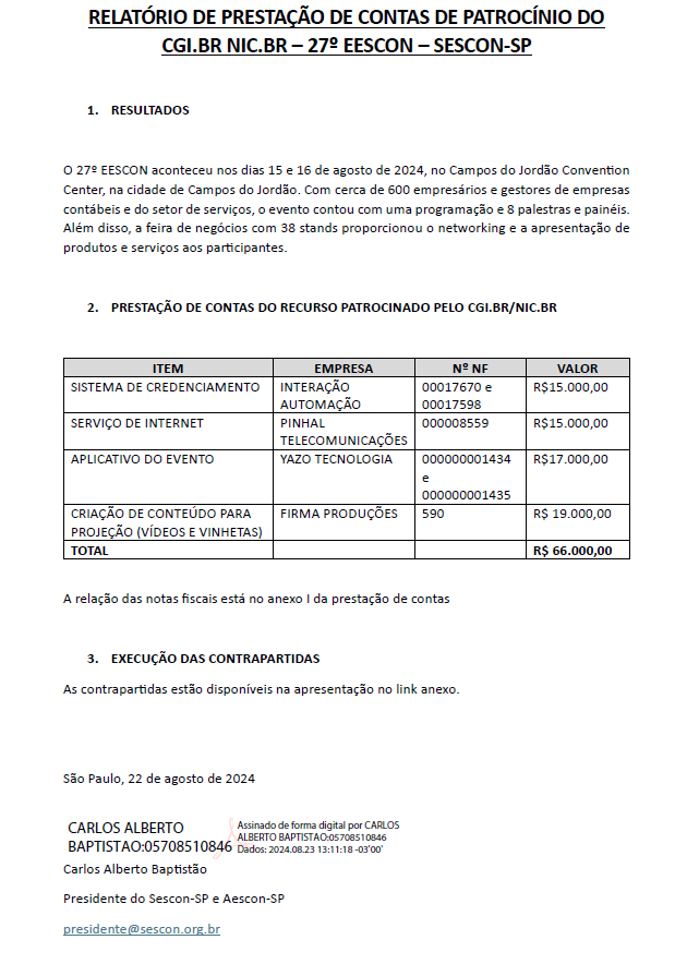RELATÓRIO DE PRESTAÇÃO DE CONTAS DE PATROCÍNIO CGI.BR NIC.BR – 27º EESCON